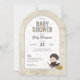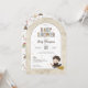 Feiern Sie Ihren kleinen Zauberer auf seinem Weg mit dieser verzaubernden Harry-Potter-Baby-Shower-Einladung, die Harry selbst zeigt. Dieses charmante Design enthält eine niedliche Illustration von Harry Potter in seiner Hogwarts-Robe, wie er auf seinem Besen reitet und bereit für magische Abenteuer ist. Der Hintergrund ist mit farbenfrohen Sternen bestreut, um eine zauberhafte Note zu verleihen. Elegante und spielerische Schriftarten zeigen Ihre individuellen Details, einschließlich des Namens des Geehrten, Datum, Uhrzeit, Ort, RSVP-Informationen und Geschenkeregister, auf schöne Weise an. Die einzigartige gebogene Form der Einladung schafft ein märchenhaftes Gefühl, während die Rückseite ein lustiges Muster von Symbolen der Zauberwelt wie Zauberbücher, Tränke, Kessel und magische Kreaturen zeigt. Perfekt für jeden Harry-Potter-F