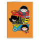 Karo Chibi Superman, Batman und Wonder Woman in separaten Comic Panels, bereit zum Handeln!