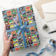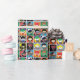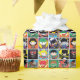Karo aus diesem niedlichen Muster, in dem Helden und Schurken der Chibi Gerechtigkeitsliga in ihrem eigenen Gitter aufgeführt werden: Batman, Superman, Wonder Woman, Batgirl, Supergirl, Joker, Harley Quinn, Catwoman, The Flash, Green Lantern, Cyborg und Bizarro.