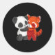Chibi Panda Bear Hugs Red Panda Runder Aufkleber