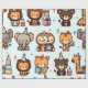 Chibi Style Animals in Birthday Hats Wrapping Pape Geschenkpapier