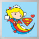 Karo aus Chibi Supergirl schafft einen Regenbogen, während sie mit ihrem S-Schild Logo und Herz durch den Himmel fliegt.