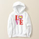 Karo aus Chibi Supergirl in einem Ping-Herz, das das "O" in diesem "LIEBE" gestapelten Logo darstellt.