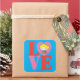 Karo aus Chibi Supergirl in einem Ping-Herz, das das "O" in diesem "LIEBE" gestapelten Logo darstellt.