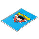 Karo aus Chibi Superman, der in den Wolken fliegt, mit seinem Super-Heldennamen über ihm und der roten Polka Dot Schildform hinter ihm.