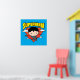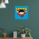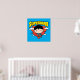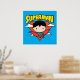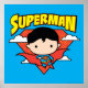 Karo aus Chibi Superman, der in den Wolken fliegt, mit seinem Super-Heldennamen über ihm und der roten Polka Dot Schildform hinter ihm.