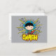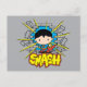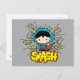Karo aus Chibi Superman, der sich durch eine Ziegelmauer mit einem großen "SMASH" schleicht!