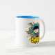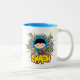 Chibi Superman schleicht durch eine Ziegelmauer Zweifarbige Tasse