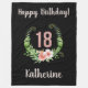 Chic schwarz 18. Geburtstag Fleece Decke mit einem rosa Glitzer Floral Wreath. Passen Sie den Namen und die Grußbotschaft des Geburtstagsmädchens an.