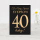 Chic 40. Gold-Effekt auf Black, Stepson Birthday Karte