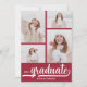 Fügen Sie Ihre Lieblings-vier Fotos auf der Vorderseite dieser Abschlussfeier Einladungen mit Absolvent und Klasse der in schicken Schriften auf einem geröteten roten Hintergrund. Weitere Designs und Farben in unserem Shop, einschließlich Einladungen, speichern Sie die Datumskarten und Postkarten.