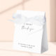 Eine schicke Gastgeschenk Hochzeit-Box mit "A Sweet Danke" in einem modernen Drehbuch und eleganter Serifentypografie, Ihren Namen und Hochzeitstag.
