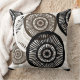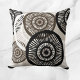 Dieses Kissen Kissen Kissen Kissen hat ein schönes zeitgenössisches, weißes, braunes und schwarzes kreisförmiges Muster auf einem weichen beigen Hintergrund. Chic, elegant und stilvoll in neutralen Farben. Ein abstraktes digitales Motiv im Reto-Stil. Inspiriert von den Rädern auf einem Bus, der rund und rund fährt.