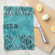 Dieses Küchentuch zeichnet sich durch einen schicken Tierdruck in blau aus. Schöne Federn, Glitzer, cooles Muster! Personalisiertes Küchentuch für sie. Benutzerdefinierter Text und Glitzer.