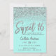 Chic Aqua Aquamarin Silver Scattered Glitzer Sweet Einladung