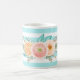 Hinzu kommt eine Touch femininer Eleganz, die mit dieser schicken türkisfarbenen Tasse aus Aqua, die mit einem weichen pfirsichfarbenen und rosa ranunculus blumengeschmückt ist. Personalisieren Sie dieses wunderschöne feminine Design, indem Sie Ihren Namen hinzufügen.