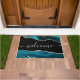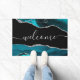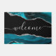 Chic Aquamarin Agate Silver Glitzer Script Willkom Fußmatte