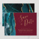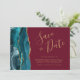 Chic Aquamarin Blue Gold Agate Burgundy Save the D Einladung