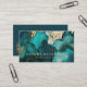 Diese dunkle, moderne Visitenkarte bietet eine Alkoholfarbe und Imitat Glitzer abstrakte Malerei in aquamarinem Blau und Gold. Personalisieren Sie es mit Ihrem Namen in groben, goldfarbenen Serif-Schriftart und Ihre Geschäftsinformationen in serifenlosen Sans-Schriftart. Auf der Rückseite der Karte finden Sie goldfarbenen Text auf einem soliden, aquamarinen Hintergrund sowie einen QR-Code, der Kunden auf Ihre Business-Website leitet.