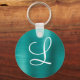 Chic Aquamarin Brushed Metal White Monogram Schlüsselanhänger