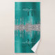 Chic Aquamarin Silver Driving Glitzer Monogram Nam Badhandtuch Set