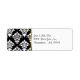 Elegante Damask-Adressetiketten für Sie bereit, um mit Ihren eigenen Informationen individuell zu gestalten. An der links Seite ist ein schwarz-weißer Damast mit einem goldenen Streifen umgeben, der den weißen Textbereich trennt. Ideal für Ihre persönliche Korrespondenz oder Ihr Geschäft. Passen Sie an, ob Sie zum Ändern der Textfarbe oder des Schriftartes gewollt haben.