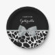 Chic Black and White Giraffe Print Silver Gray Bow Pappteller