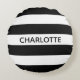 Chic black and white streifen individuelle Name mo Rundes Kissen