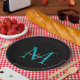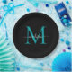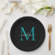 Chic Black Aquamarin Green Monogram Modern Script Pappteller