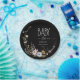 Die schicke und moderne schwarze Babyduschplatte sorgt für ein gewagtes Statement und bietet zarte Blumendetails. Ideal für eine stilvolle und moderne Babydusche.