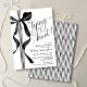 Personalize this simple classy black and white "she's tying the knot" theme bridal shower invitation with a soft watercolor coquette black bow and striped ribbon, script calligraphy typography, and minimalist design and shower wording on the front side with black watercolor stripes on the back side. It's the perfect simple and elegant invitation to invite guests to shower your bride-to-be. Perfect invitation for bridal shower, bachelorette party, or engagement party! Easily add your wording to make it uniquely yours, and order prints + envelopes, or download the printable instant digital file to print at home! Check out the matching stationery suite including wedding invitations, photo save the dates and more in the full collection above ♥ Custom design requests, colors, product collection additions, and template questions are always welcome - click the "message" button or email direct (with a quick response time!): contact@figandlilyco.com. Design is lovingly created by Fig and Lily Studios - sending blessings and thanks for being here with us ♥