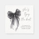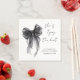 Chic Servietten für Ihr Brautparty mit einer zarten Aquarellfarbe eines schwarzen Coquette-Bogens, "She's band the Knoten" in einer modernen Kalligraphie-Schrift, und der Name der Braut und das Duschdatum in einfacher Schrift.