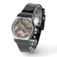 Chic Black Coral Pink White Gold Marmor Muster Armbanduhr
