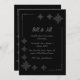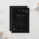 Machen Sie mit dieser "Chic Black Floral Wedding Invitation with Silver Accents" eine kühne und anspruchsvolle Aussage. Dieses Design mit einem schwarzen Hintergrund, der mit subtilen Blumengrafiken und silberfarbenen Metallic-Stilelementen in den Ecken geschmückt ist, eignet sich perfekt für Hochzeiten im Abend, Krawatte in Schwarz oder für Paare, die eine minimalistische, aber luxuriöse Ästhetik Liebe haben. Elegantes graues Skript zeigt Ihre personalisierten Hochzeitsdetails mit dezenten Charme. Voll anpassbar, um Ihre Veranstaltung und Ihren Stil Anzug.
