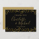 Chic Black Gold Hearts Confetti Signature-Script Dankeskarte