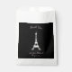 Dieses elegante, feminine Design zeichnet sich durch ein weißes Bild des Eiffelturms auf schwarzem Hintergrund aus. Ihre Nachricht erscheint in elegantem rosa Französisch Schrift. Mit diesen stilvollen Wohlfühltaschen können Sie Ihren Party ganz einfach den Paris-Stil hinzufügen.