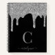 Chic Black Silver Sparkle Glitzer Tropfens Monogra Notizbuch