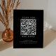 Dieses schicke, schwarze Typografie-Menü QR-Code Podest-Schild ist perfekt für einen kleinen Geschäftsinhaber, Restaurant, Bar oder Hochzeit! Das einfache, dunkle Design besticht durch klassisch minimalistische Schwarz-Weiß-Typografie und ein stilvolles, elegantes Ambiente. Anpassbar in jeder Farbe.