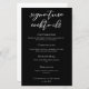 Diese schicke Cocktails-Liste mit schwarzen Signaturen enthält eine einfache, weiße Tyopgrafie Ihrer Getränkekarte und Zutaten für Ihre Hochzeitsfeier. Ein modernes, minimalistisches Getränkekarte für einen Empfang mit altmodischer, kosmopolitischer Küche, Moskauer Maultier und Margarita. Verlass oder tausche unseren für deinen Lieblingscocktail.
