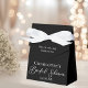This elegant black bridal shower favor box features beautiful white typography for an evening party in the winter. Minimalist script is a modern trend for a contemporary bride.
