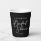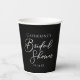This elegant black bridal shower party paper cup features beautiful white typography for an evening party in the winter. Minimalist script is a modern trend for a contemporary bride.