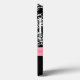 Stilvolle iPhone-Hülle, mit schwarz-weißem Damast-Muster, oben auf dem Gehäuse und einem schwarzen Hintergrund, unten. Die Grafik eines hübschen rosa Schleifen und Bogen verläuft zwischen den beiden Hintergründen quer durch das Gehäuse. Rosa Skripttext am unteren Rand ist bereit, zu personalisieren. Hübscher Weg, um Ihr iPhone zu schützen und stilvoll aussehen, und macht eine großartige personalisierte Geschenkidee.