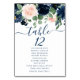 Chic Blooms | Gästebamen der Marine und Blush Tischnummer