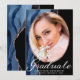 Schicken Sie Ihre Familie und Freunde diese 2021 chic Glitzer und Glam benutzerdefinierte Foto Abschluss-Ankündigungskarte, um sie zu wecken. Dieses moderne Template-Design bietet Ihnen ein Foto, um auf Ihr eigenes gerahmte in Imitaten Rose Gold Glitzer mit einem Rand von blau und Rose Gold agate abstrakte Kunst auf der links und schwarz auf der rechten Seite. Unter Ihrem Foto steht "Graduate" in eleganter Schrift Typografie mit Ihrem Namen, der Schule und dem Jahr zum Personalisieren. Entworfen von Susan Coffey.