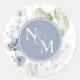 Chic Blue and White Floral Monogram Umschlag Aufkl Runder Aufkleber