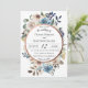 Aquarellfarbene Blume in schick staubblauem und neutral mit rund Rose Goldrahmen Hochzeitseinladung. Anpassen von Text, Schriftart, Farbe und Größe.