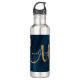 Chic Blue Gold Agate Script Monogram Custom Edelstahlflasche