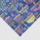 Dieses Taschentuch-Papier mit einem schicken Muster aus Gold, Grün und lila Menorah und Goldstar von David auf einem blauen Hintergrund. Entworfen von dem weltbekannten Künstler Tim Coffey.