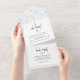 Chic Blue Heart Boy Babydusche und Buchungsanfrage All In One Einladung