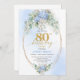 Chic Blue Hydrangea Eucalyptus Gold 80th Birthday Einladung